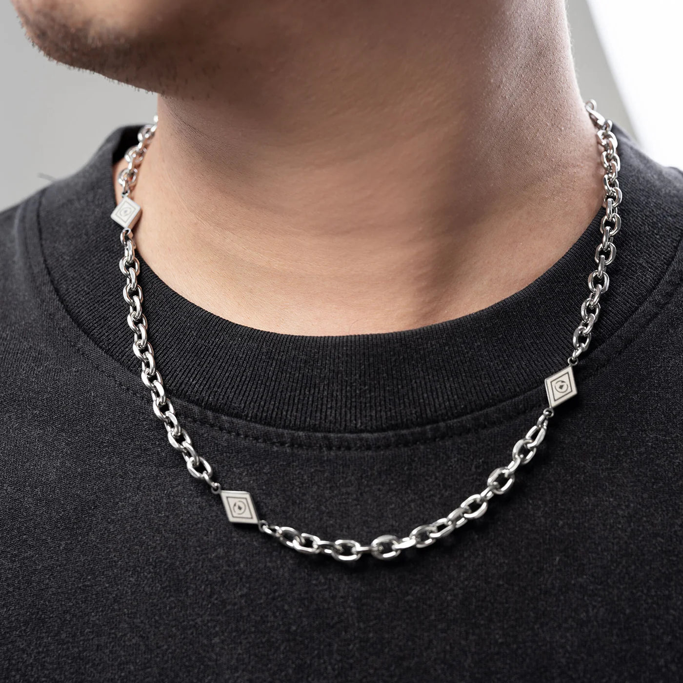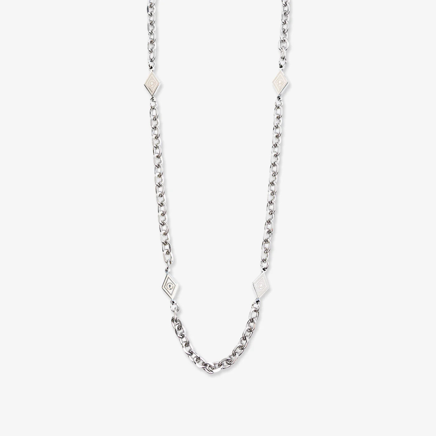 Made from the highest quality 316L stainless steel. This necklace comes with 6mm rolo chain, divided in four parts with our brand new diamond shaped pendant.